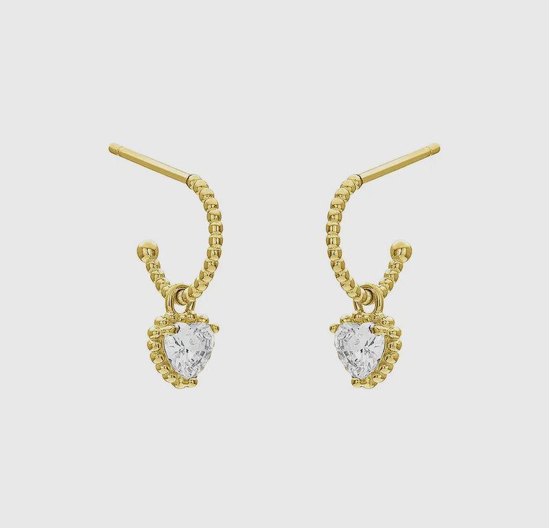 18k gold plated 925 sterling silver, cubic zirconia. Hypoallergenic.